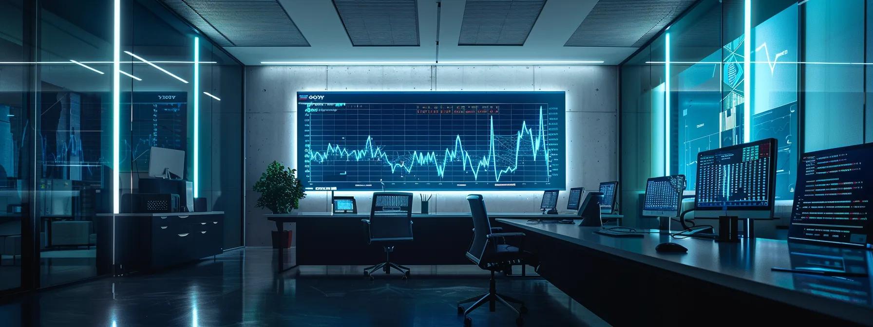 a modern office setting features a sleek conference room with a large screen displaying dynamic analytics and key metrics, emphasizing a strategic discussion on maximizing video conferencing return on investment, illuminated by crisp, focused lighting that highlights the intricate details of the presentation.