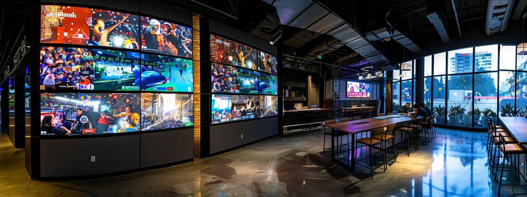 a sleek, modern office meeting room showcases a high-tech video conferencing setup, with a large screen displaying vibrant visuals of a diverse team engaged in a dynamic virtual discussion, emphasizing collaboration and strategic investment in technology.
