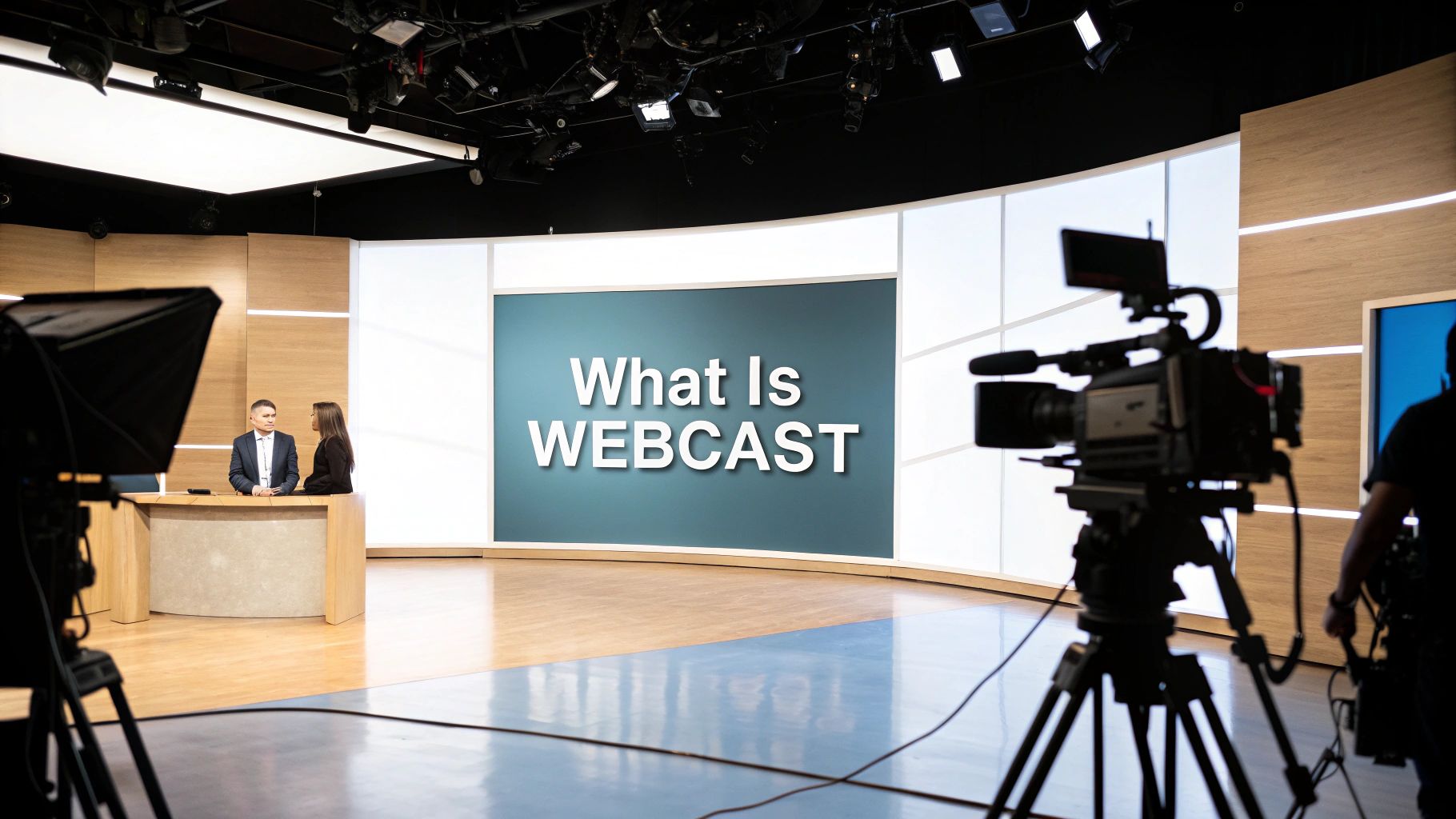 One of the biggest head-scratchers for people is the difference between a webcast and a webinar. They sound alike, and they both involve streaming, but they’re built for entirely different jobs. Think of a webcast as a one-to-many broadcast, designed for a huge audience that’s mostly there to watch and listen—kind of like a live TV show translated for the web. It's your digital auditorium.